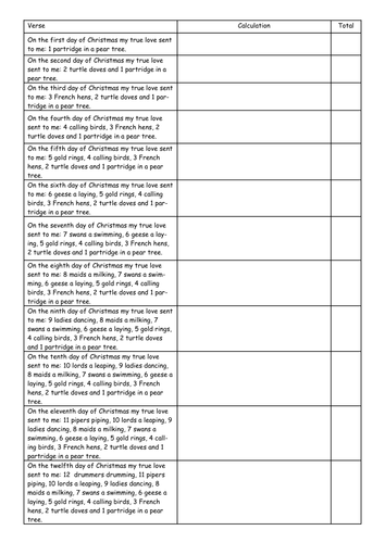 12 Days Of Christmas Math Worksheet Answer Key - Times Tables Worksheets The 12 Days Of Christmas Math Worksheet Answer Key help the young children to become creative and unbiased. Another indoors Christmas activity includes attracting and artwork by little young children. There may also be recitation of poems and scenario informing. Sudoku is yet another extremely important inside online game that families can ... 12 Days Of Christmas Teaching Resources | Teachers Pay Teachers Christmas Around the World: Research Project (12 Days of Christmas) by More Than a Worksheet 753 $3.00 PDF Activity Christmas Around the World for your outside of the box thinkers! Students will research holiday traditions from another country and compose their own 12 Days of Christmas Song based on that country.